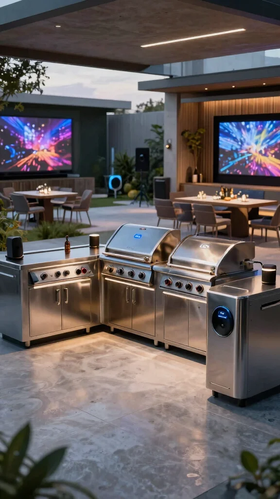 Consider high-tech appliances and smart features for convenience and efficiency in your outdoor cooking space.