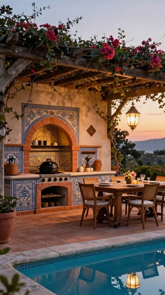 This Mediterranean-inspired kitchen not only enhances your cooking experience but also provides a stunning backdrop for sophisticated outdoor entertaining.