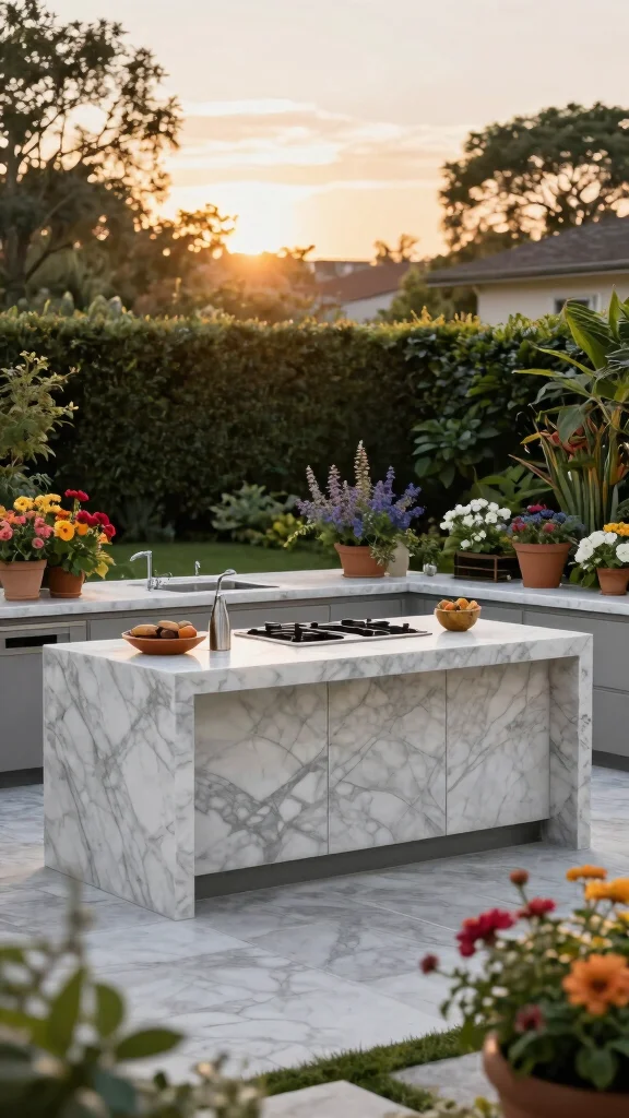 Do you dream of a touch of luxury in your backyard? A marble outdoor kitchen island can elevate your cooking space to a five-star experience. This design combines elegance with functionality, perfect for all your culinary adventures.
