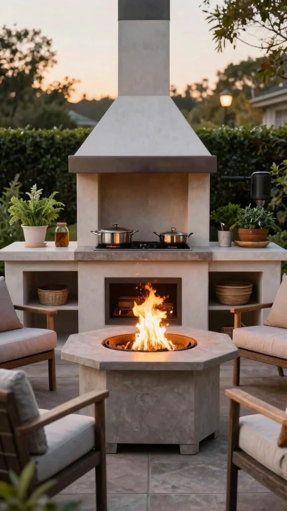 ❝ Hosting feels effortless when your outdoor kitchen with island includes a fire pit. Friends linger as the flame works its magic, and you cook, chat, and heat desserts all in one cozy space. It’s practical warmth that makes every evening memorable. ❞