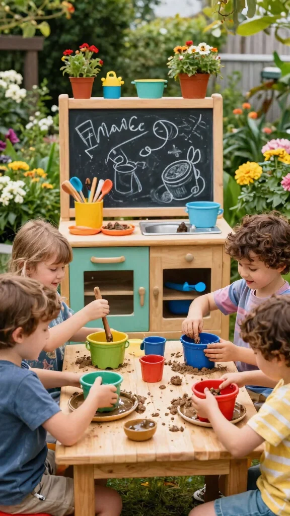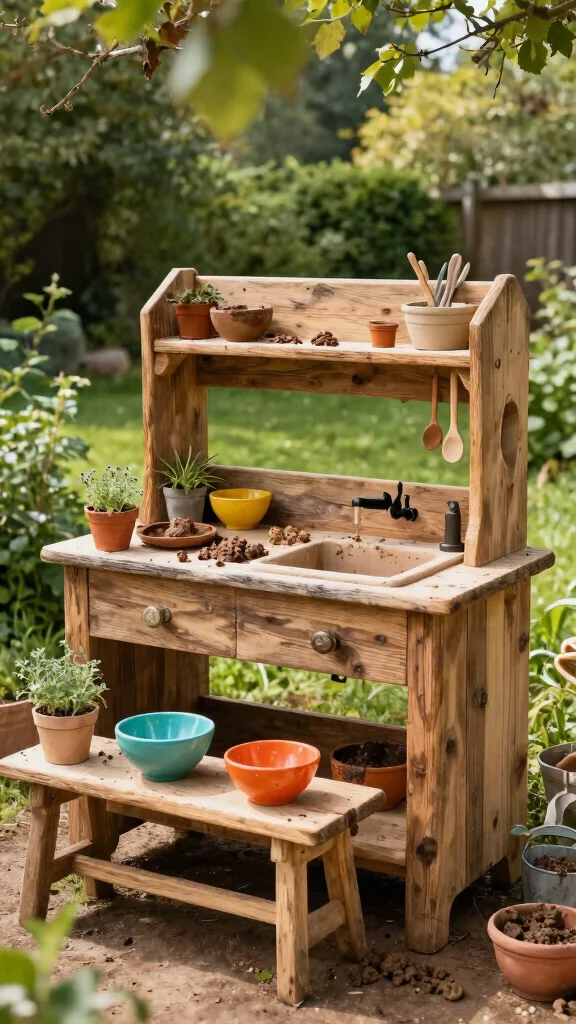 Fun fact: a simple outdoor mud kitchen with a nearby water source keeps kids engaged for 25 minutes or more per session. A rustic wooden bench and mismatched bowls invite hands-on play, transforming twigs and stones into imaginative dishes.