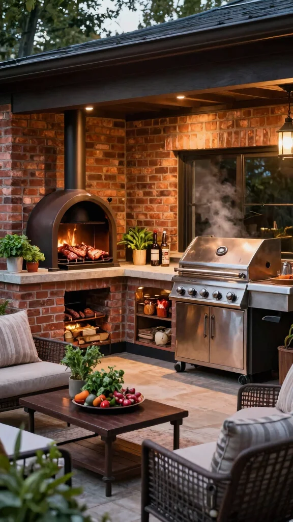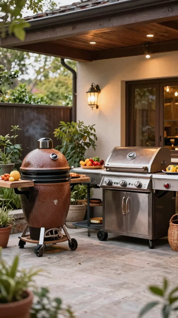 Fun fact: a Kamado grill can hold a steady temp for 6–8 hours on a single charcoal load. Pair it with an offset smoker, and your outdoor smoker grill area runs brisket at 225–250°F and burgers at 400–450°F in one setup.