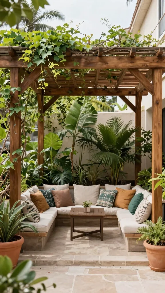 Utilizing climbing plants on your pergola can create natural shade while adding greenery.
