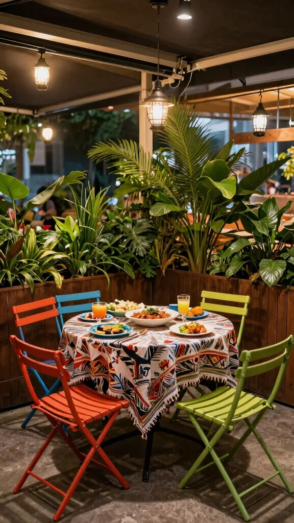 Transforming your patio into a vibrant dining area can elevate your outdoor experience. A compact bistro-style table paired with folding chairs provides an ideal setup for enjoying meals outdoors without overwhelming your space. To create a lively atmosphere, accessorize with colorful dishware and a charming tablecloth.