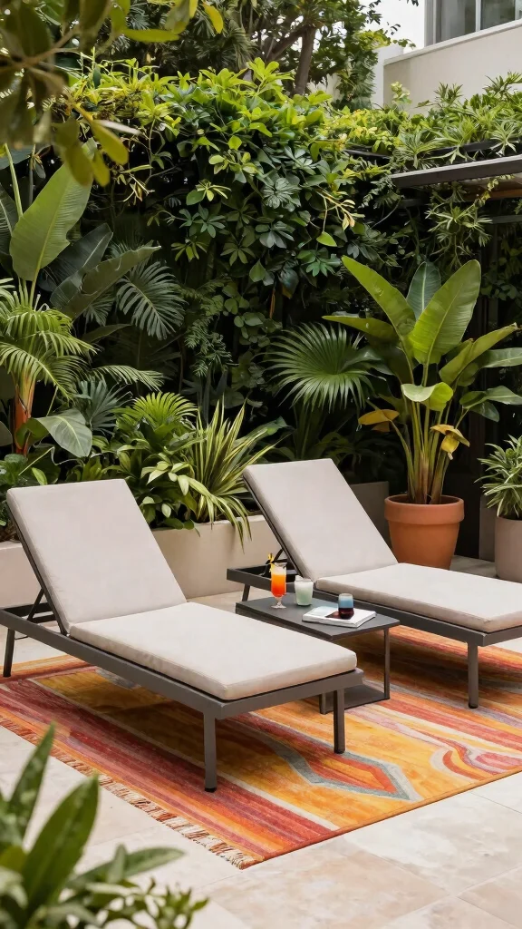 – Add a small coffee table in front of loungers for snacks or drinks.