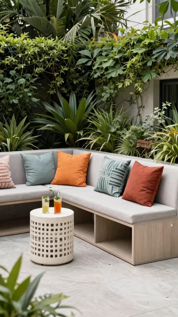 In this setup, you’ll enjoy the beauty of greenery alongside the comforts of your patio, seamlessly blending two elements together.