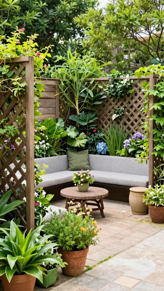 Consider lattice panels or garden fences to create visually appealing backdrops for climbing plants, enhancing your patio’s aesthetics while fostering a cozy ambiance.