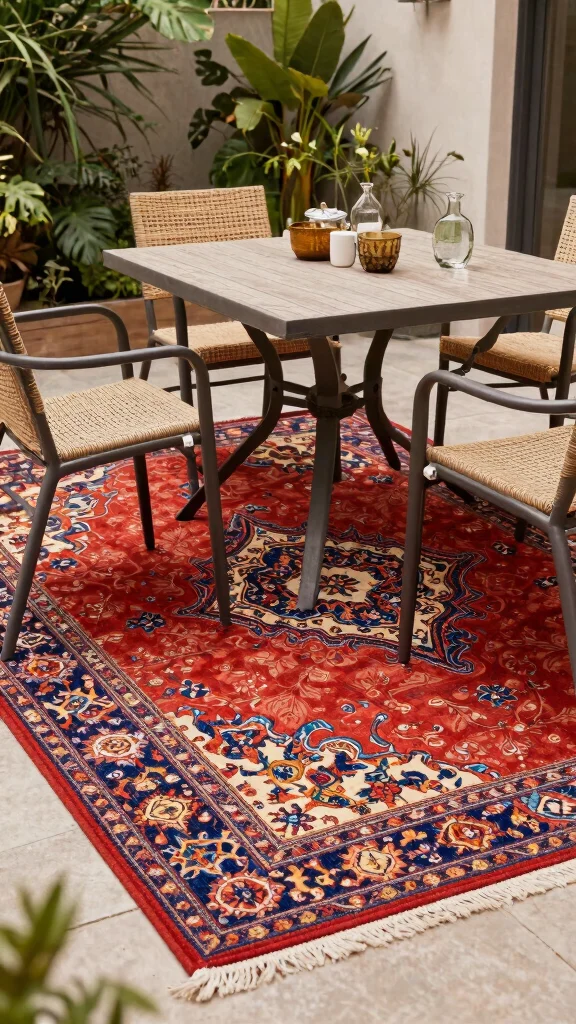 Consider these styling ideas for your outdoor rug: