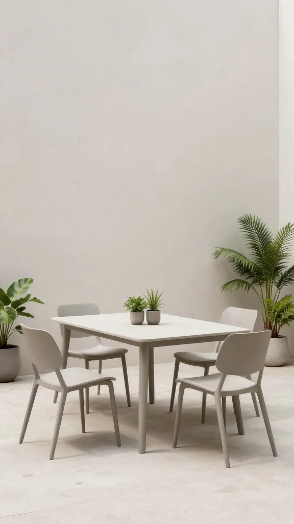 Characteristics of minimalist designs include tables and chairs that feature simple geometric shapes and a limited color palette. Materials like metal or teak wood are excellent choices due to their durability and modern appeal.