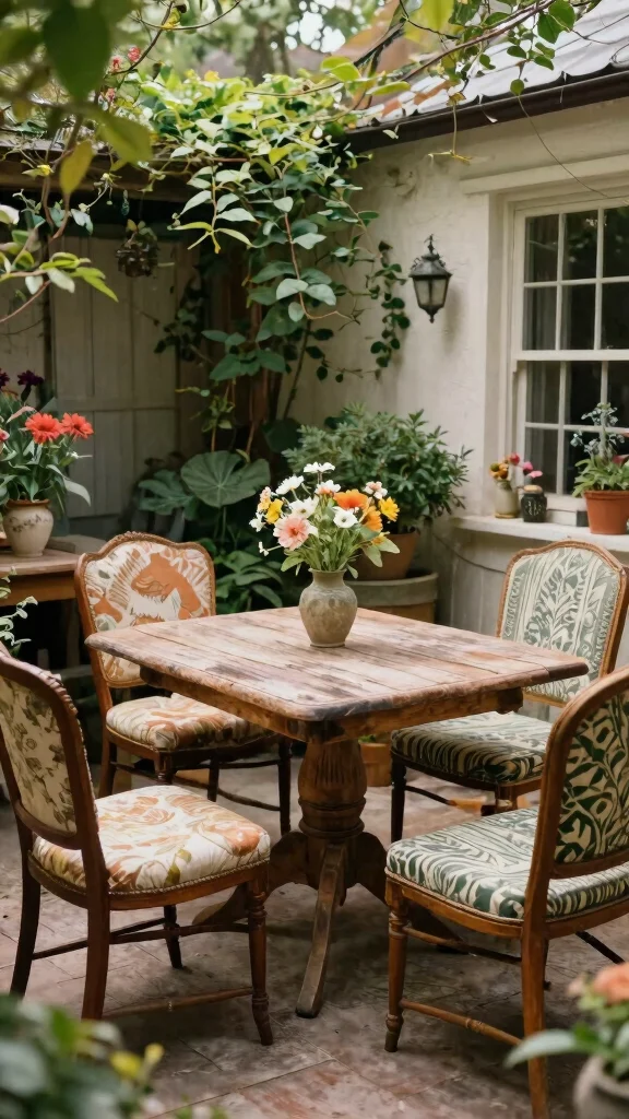 Incorporating vintage furniture into your patio decor brings a nostalgic touch that can’t be replicated by new pieces. Antique tables and mismatched chairs create a unique charm and character, making your outdoor space feel special.