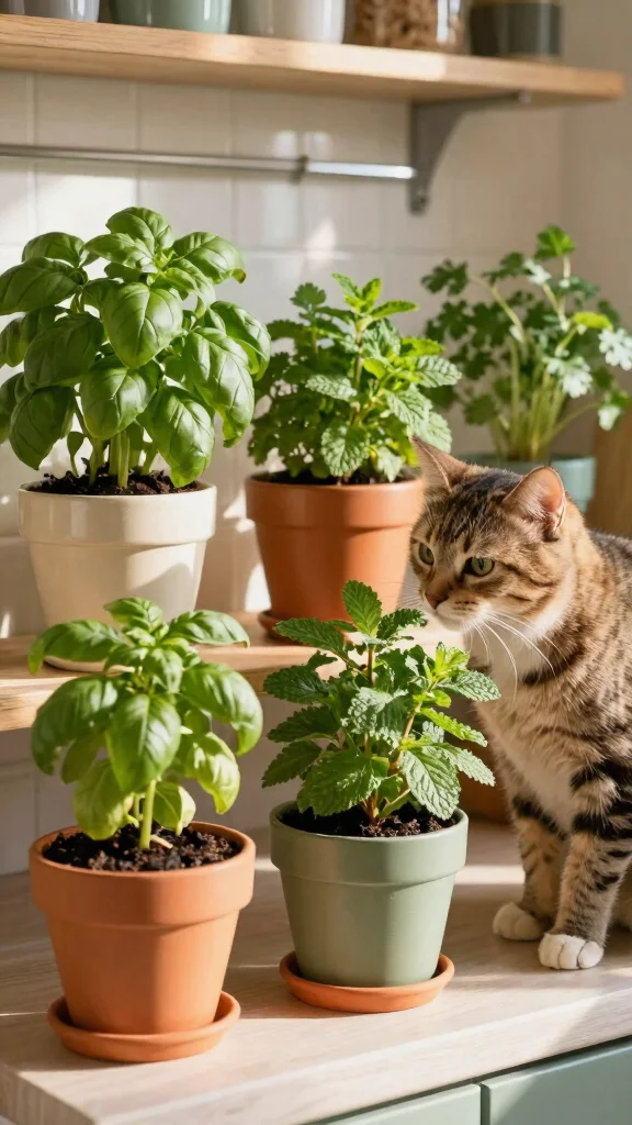 Choose decorative pots that match your kitchen while ensuring these herbs receive proper sunlight and care. Having these varieties around creates a calming environment for both you and your pets.