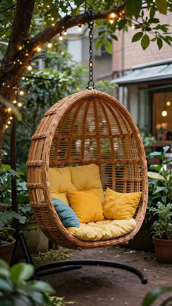 A hanging chair can truly enhance your small garden, creating a whimsical retreat full of charm.